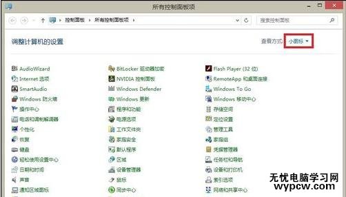 使用鼠標點擊屏幕右下方的開始按鈕(藍色四方圖標)→控制面板