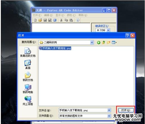 選擇本地磁盤中已存在的二維碼圖案,點擊“打開”按鈕。