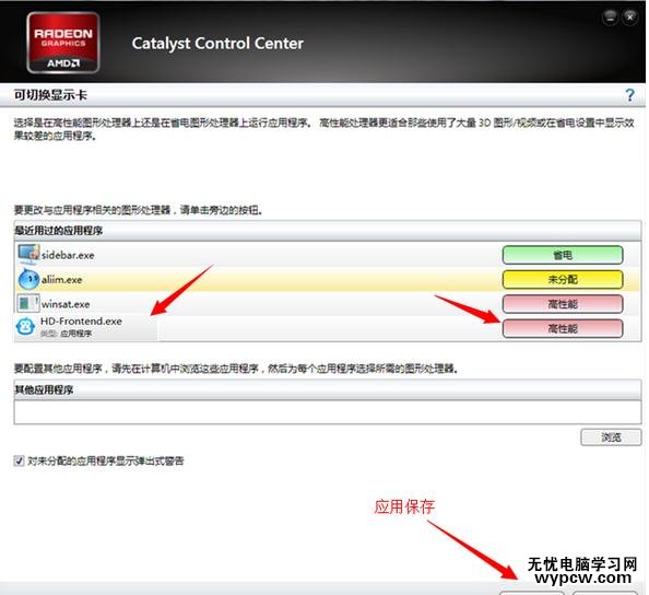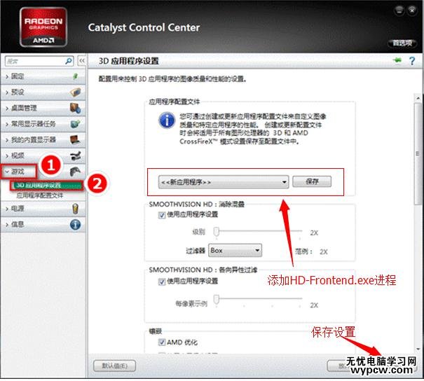 3、(可選步驟) 打開catalyst(tm) control center >游戲 >3D應用程序設置 >新應用程序添加猩猩助手進程 > 保存