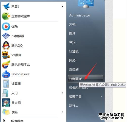 稍微高端一點的方法話,以win7系統為例,打開控制面板。