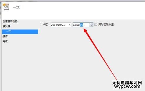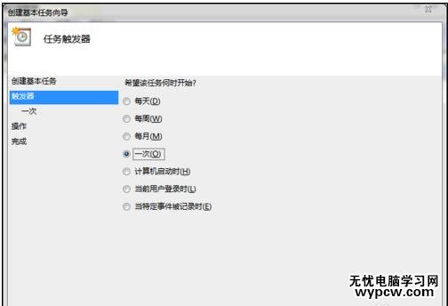 進入任務開始觸發器,小編這里選擇一次,因為搶手機是一次一次來,然后下一步。