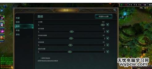 然后我們再選擇音頻,把后面那個禁用所有音效勾選了,這個時候,你的電腦FPS又會有小幅度的提升。做了這兩個更改,玩英雄聯盟應該沒什么壓力了。