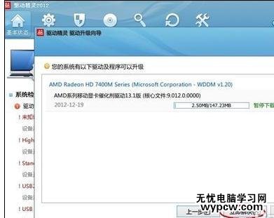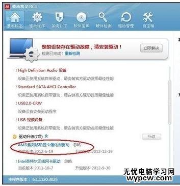 顯卡驅(qū)動(dòng)不正常,可以手動(dòng)重新安裝顯卡驅(qū)動(dòng)。如果自己沒有顯卡驅(qū)動(dòng),也不知道具體是什么顯卡的話,可以借助一些第三方軟件。這里以“驅(qū)動(dòng)精靈”為例。首先打開驅(qū)動(dòng)精靈,軟件會(huì)自動(dòng)檢測系統(tǒng)的驅(qū)動(dòng)。等待軟件 檢測完成以后,在首頁找到顯卡,點(diǎn)擊“升級(jí)”如圖所示