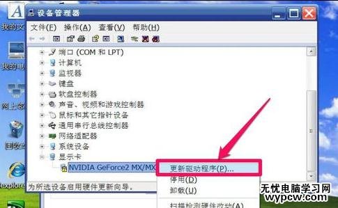 5,卸載了以后,然后選擇手動方法更新顯卡驅動,所以再選擇菜單中的“更新驅動程序”這一項。