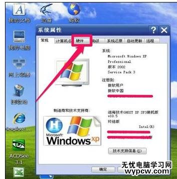 2,打開了系統屬性窗口,在窗口中選擇“硬件”這一項。