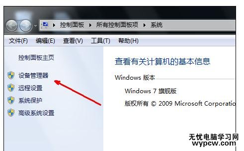 在屬性頁(yè)中,點(diǎn)擊左邊的設(shè)備管理器選項(xiàng)。如圖所示。