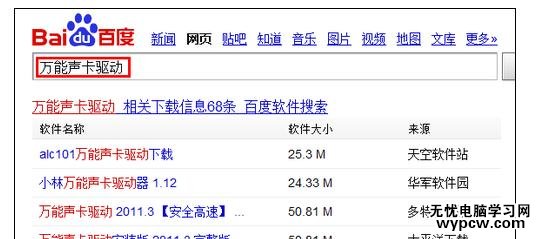 在百度搜索萬(wàn)能聲卡驅(qū)動(dòng),找到一個(gè)鏈接,進(jìn)入下載,下載之后安裝,安裝之后重啟就可以恢復(fù)正常的聲音了。