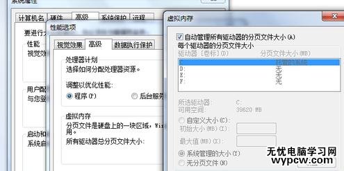 計算機-屬性-高級系統設置-性能設置-“高級”選項卡-虛擬內存-更改-選擇要設置的驅動器c盤,選擇系統管理大小或者根據需要選擇自定義大小-設置-確定。