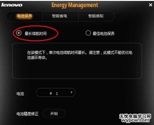 6.如果你要讓他一直接通著電源,而上邊的電量是100%,那么需要您把上面的狀態改為“最長續航時間”就可以了。