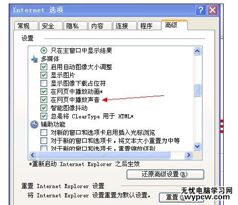 把【在網頁中播放聲音】前面打勾,點擊【確定】就可以了