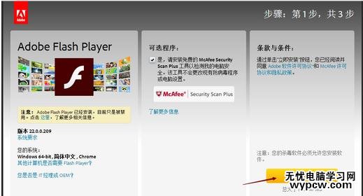然后稍等片刻,flash player就會自動安裝完成了,重啟一下你的電腦即可”。