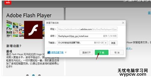在彈出的菜單中選擇“adobe flash player”,點擊箭頭所示的“立即安裝”。