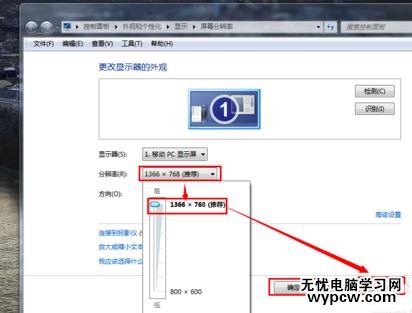 【屏幕分辨率設置問題-設置分辨率】:在分辨率設置對話框點擊“分辨率”下拉菜單,把分辨率調到最高,然后點擊“應用”,再點擊“確定”。