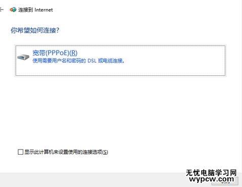 點擊設(shè)置新連接,如果電腦沒有連接internet,就是設(shè)置連接,如圖:
