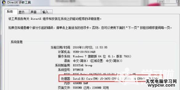 3、開始 - 運行(輸入dxdiag)- 確定或者回車,打開DirectX診斷工具,可查看電腦的CPU。