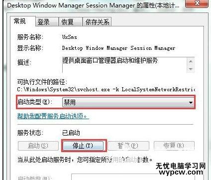 4、最后將其啟動類型改為“禁用”,并停止其服務狀態,點擊確定保存設置,如圖所示: