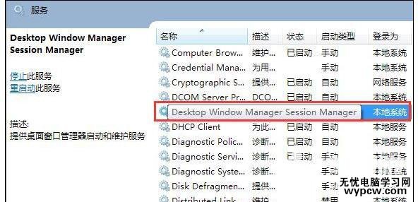 3、接著在右側窗口找到Desktop Window Manager Session Manager服務并雙擊將其打開,如圖所示: