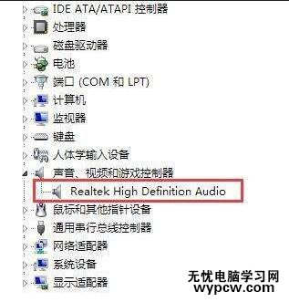 3、在設備管理器中的“聲音、視頻和游戲控制器”中查看聲卡是否正常安裝,如出現感嘆號或者未知設備時,可以使用第三方軟件進行修復或者重新安裝