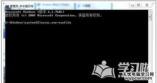 3、輸入assoc.exe=exefile,然后按下回車鍵(Enter),完成后關閉窗口。然后再用鼠標雙擊軟件圖標,看能不能正常打開。