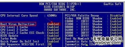 3、重啟電腦,在出現開機畫面時按下鍵盤(對于AWord來說,一般為”F12“鍵)對應鍵進入CMOS設置,進入”BIOS Features Setup”,將“Virus Warning”(病毒警告)設置為“Disabled”;