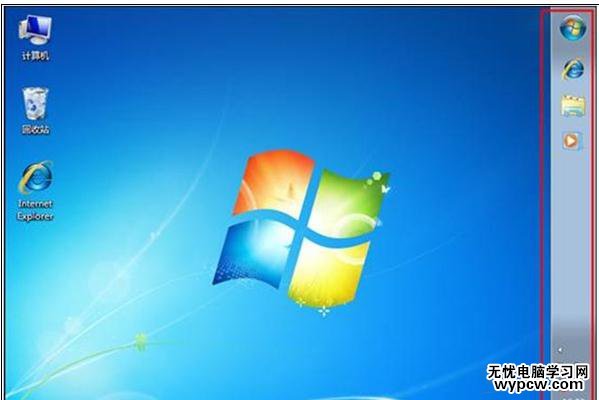 3、鼠標移動到任務欄上,常按后可以直接將任務欄拖到右邊,使其顯示在桌面的右邊