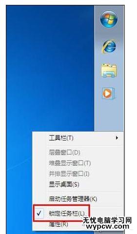 1、在任務欄處右擊,將“鎖定任務欄”前面對鉤取消。