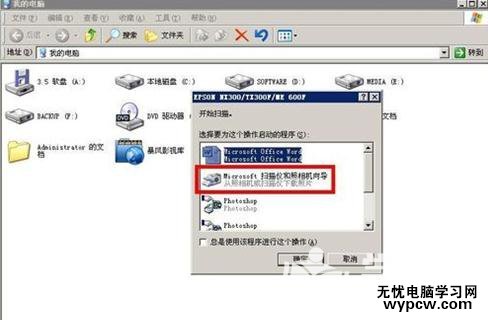 2、雙擊這個掃描儀盤符,會打開如下圖所示的對話框,讓你選擇程序對他打開,我們直接選擇第二項即可;