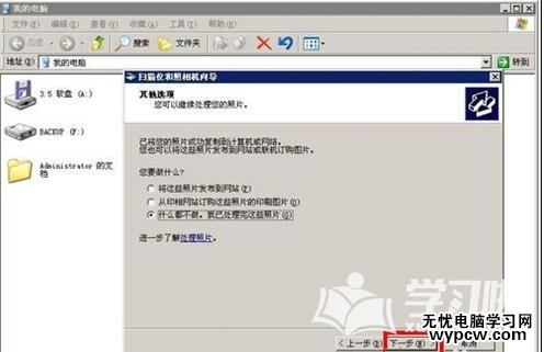 8、掃描完成之后,會進入下圖所示界面,提示你要怎樣做,我們直接點擊下一步,也就是什么都不做,我已處理完這些照片;