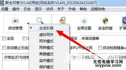 8、點擊“啟用監控”右側的下拉按鈕,從中選擇“主動引導”模式,同時點擊“啟用監控”按鈕以列出當前局域網中所有主機。