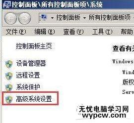 2、調出系統屬性窗口后,在其左側將高級系統設置打開,如圖所示: