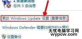 1、首先點擊小旗子,打開之后,選擇更改windows update設置(重要信息),如圖所示: