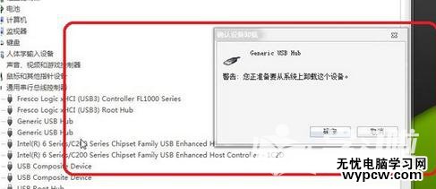 3、可是我怎么能記住那名字呢?還是用我的土辦法,挨個實驗,逐個卸載,哪一個卸載之后,鼠標底板的紅燈滅了,那個就是對應的USB接口了。