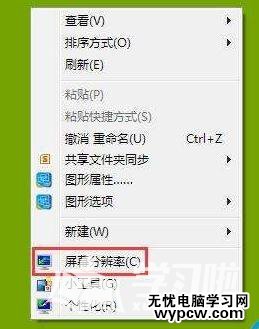 1、在win7桌面右鍵打開菜單,選擇屏幕分辨率,如圖所示: