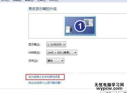 2、打開屏幕分辨率窗口之后,點擊“放大或縮小文本和其他項目”,如圖所示: