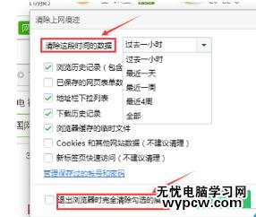 2、在彈出的對話框中選擇清除時間和所要清除的記錄,勾選退出瀏覽器時完全清楚勾選的痕跡,點擊立即清理;
