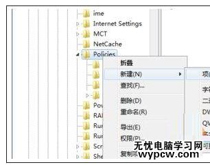 3、在“policies”項上單擊右鍵,選擇“新建”—“項”,將該項命名為“System”;