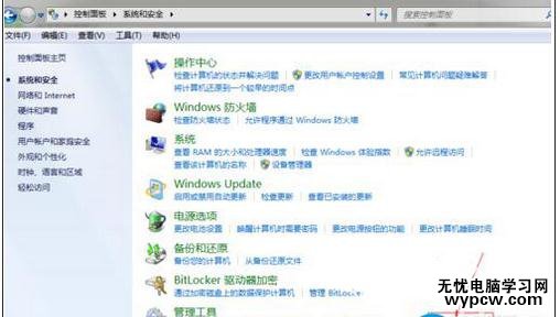 2、單擊“系統(tǒng)和安全”選項(xiàng)。