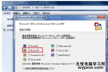 5.然后在軟件列表中,選定你要安裝的程序,其中要包括excel軟件,將前面的復選框選定就可以了。最后點擊更新按鈕。