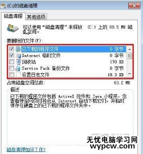 9、在彈出的“磁盤清理”界面中“要刪除的文件”框中勾選暫用空間比較大的文件,點擊“確定”,在彈出是否永久刪除這些文件,點擊“是”即可開始清理。