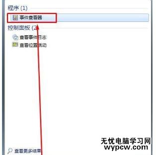 5、點擊開始菜單,在搜索框中輸入:事件查看器 在搜索結(jié)果中找到并點擊“事件查看器”;