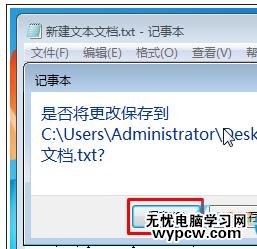 3、參照方法一步驟1、2將命令輸入到文本文檔中,點擊關閉按鈕,在彈出的框中選擇“保存”;