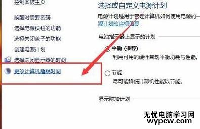 接下來(lái),選擇好電源管理模式之后,點(diǎn)擊頁(yè)面左側(cè)設(shè)置按鈕,選擇“選擇關(guān)閉顯示器的時(shí)間”選項(xiàng),然后進(jìn)入顯示器關(guān)閉時(shí)間設(shè)置頁(yè)面。