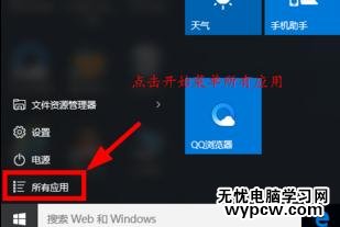 點擊開始菜單,然后界面中我們這里選擇所有應用打開進入,如圖所示