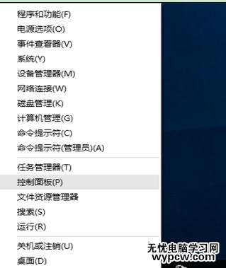 首先在windows10系統中,鼠標右鍵點擊桌面左下角的開始菜單(左下角四個小方塊圖形的圖標),然后點擊“控制面板”