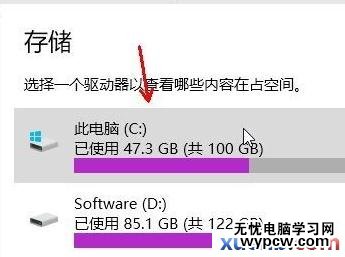系統(tǒng)會自動分析各個硬盤分區(qū)的存儲情況,第一次打開的時候需要一些時間共系統(tǒng)進(jìn)行分析計算,如圖所示,點(diǎn)擊C盤,即系統(tǒng)安裝的盤符