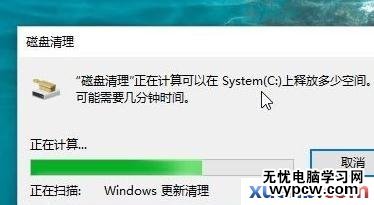 選擇對話框里面選擇C盤,點(diǎn)擊“清楚系統(tǒng)文件”,接著會花掉比上次更多的掃描時間,稍等一會兒