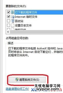 在彈出的“C:的磁盤清理”對話框中選擇 “清理系統(tǒng)文件”