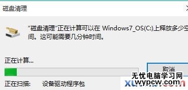 選擇完畢之后,系統將自動進入磁盤清理的掃描過程,靜靜等待即可,一般1分鐘之內即可掃描完成