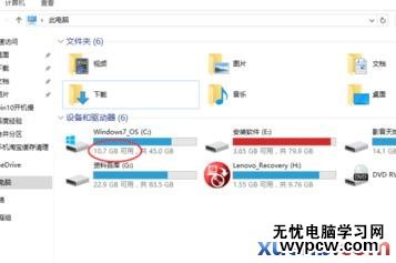 在打開的頁面當中,我們可以看到這時系統盤(C盤)可用空間已經不多