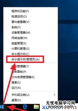 右鍵開始,在菜單中選擇“命令提示符(管理員)(A)”。